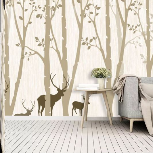 Hand-painted forest fawn landscape paintings Nordic forest elk bedroom living room TV setting wall paper wallpaper