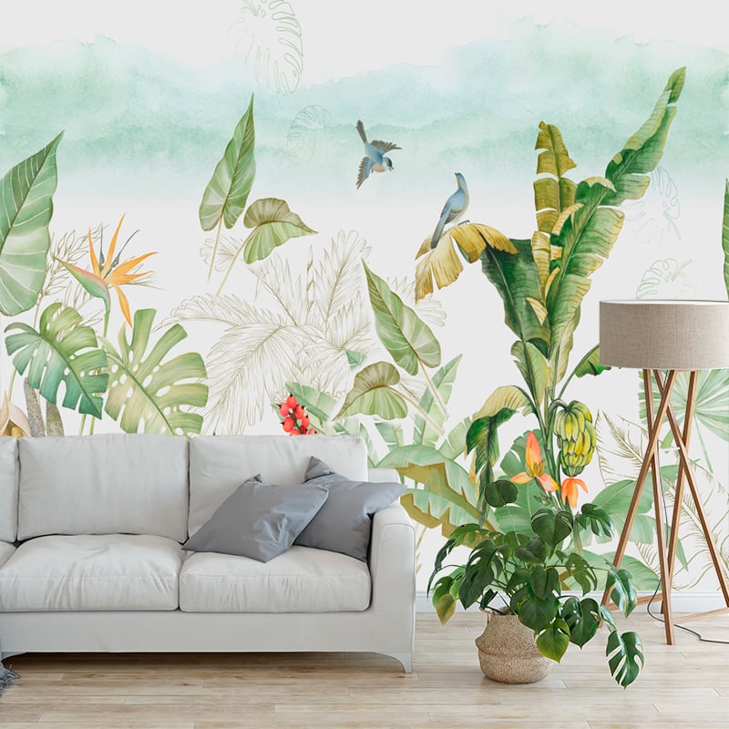 Tropical rain forest sitting room background wall murals ou jungle restaurant hotel wall cloth of home stay facility
