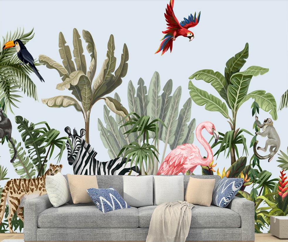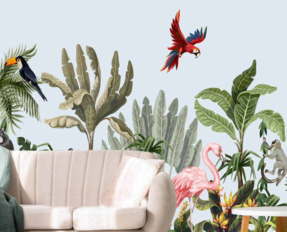 Tropical rainforest parrot banana bedroom living room background wallpaper murals