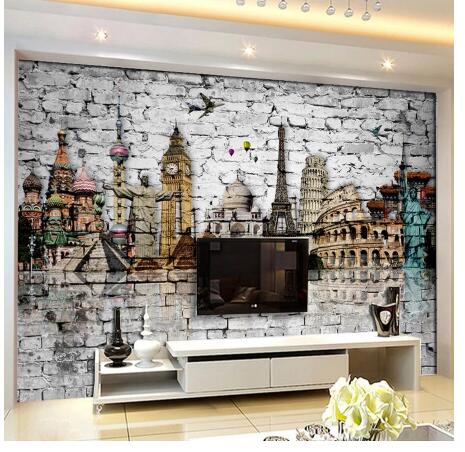 Classical European Architecture Eiffel Tower Brick Wallpaper Wall Murals