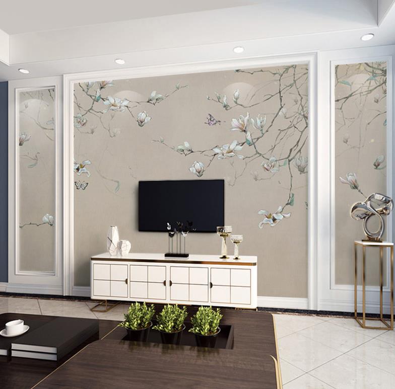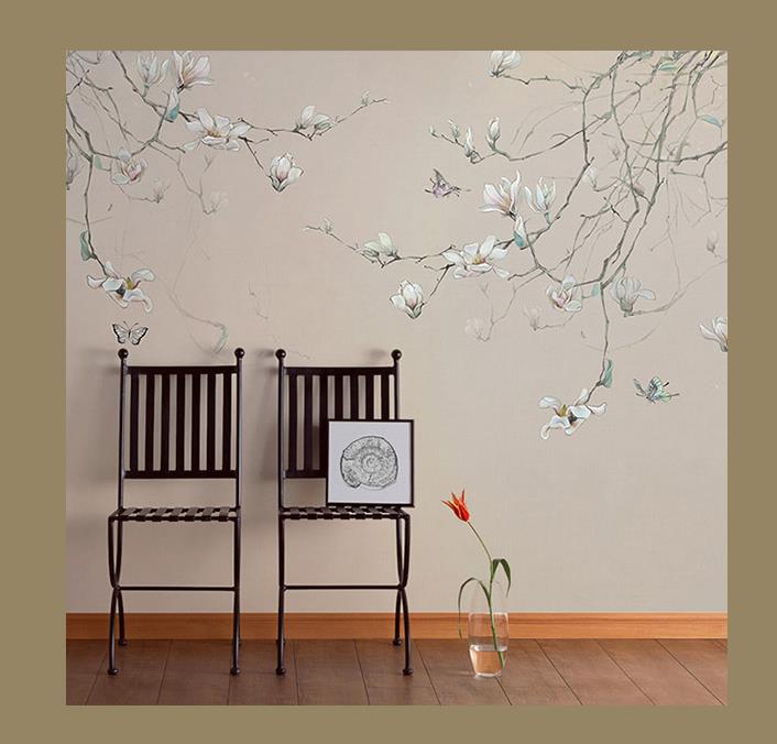 Chinese painting flowers, butterflies fluttering wallpaper murals