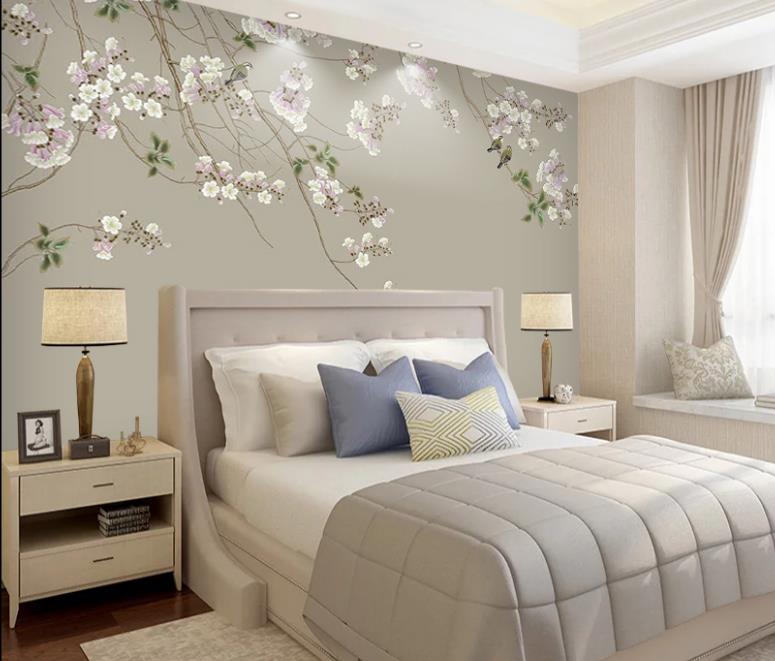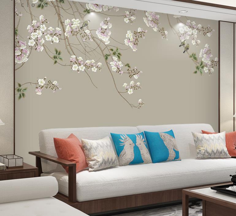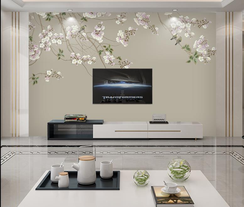 New Chinese style hand-painted murals custom magpie and simple but elegant living room TV setting wallpaper murals