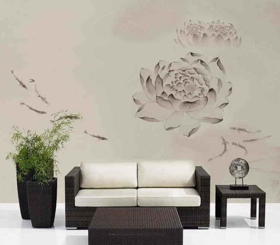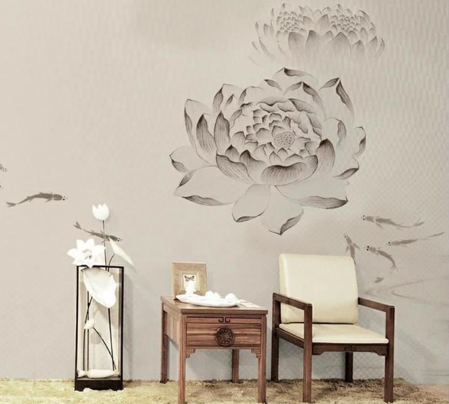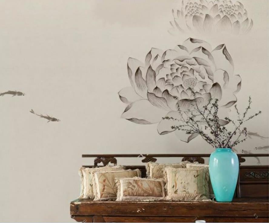 New Chinese style "lotus nine fish wall cloth sofa bedroom hotel background wallpaper wallpaper