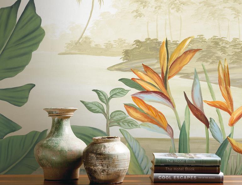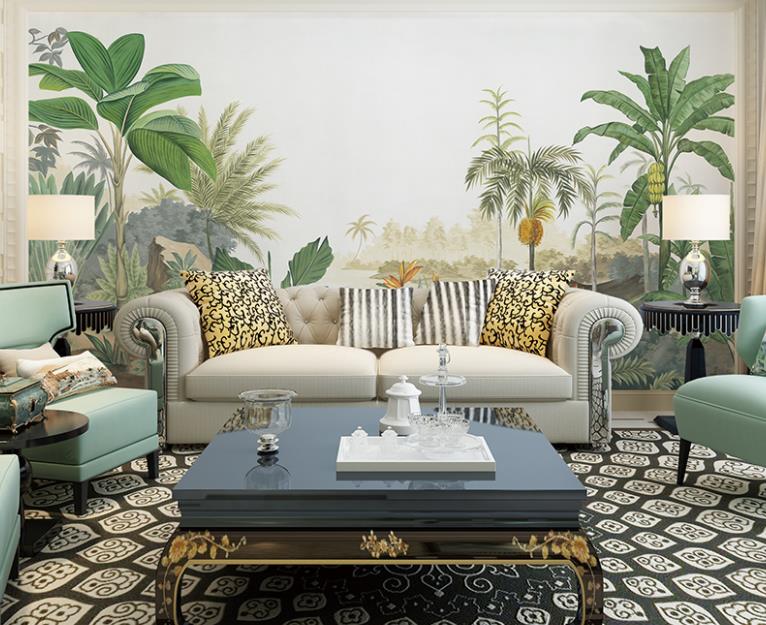 Southeast Asian rainforest mural background wall paper sitting room dining-room wall cloth sofa