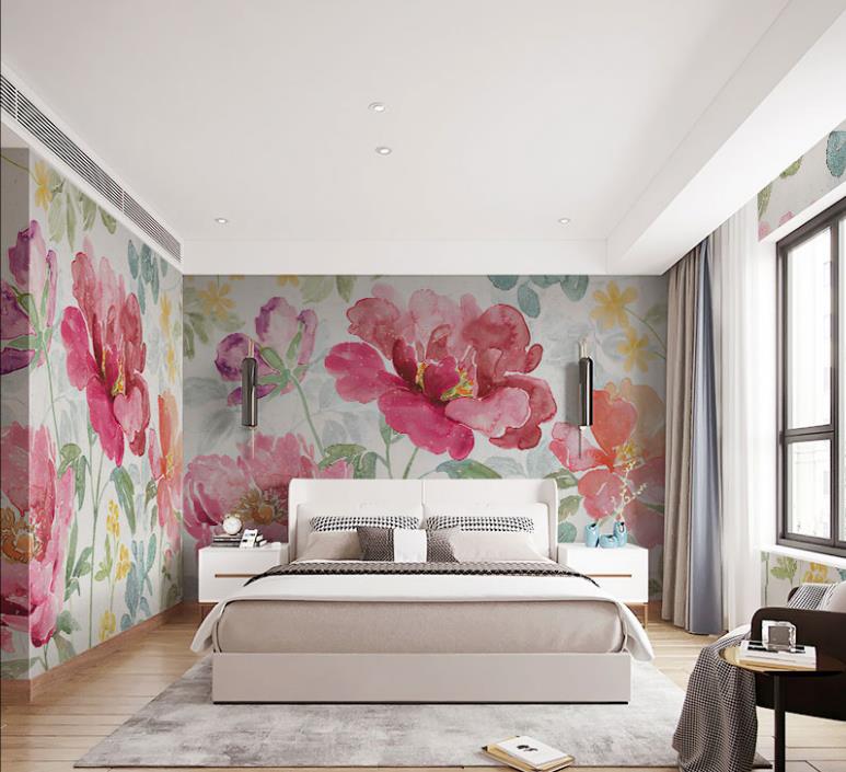Rural peony American hand-painted art living room sofa TV setting wall paper