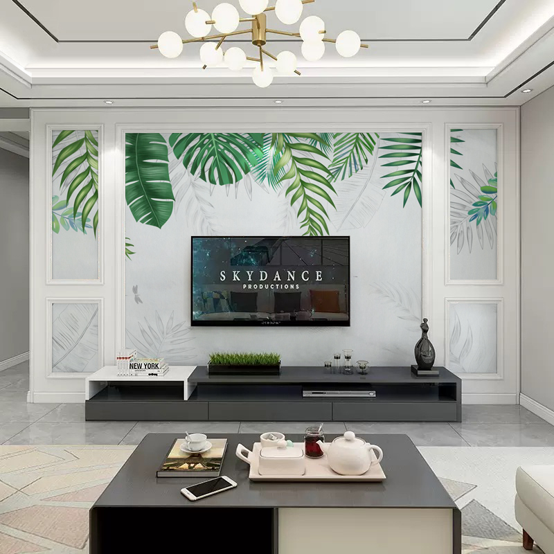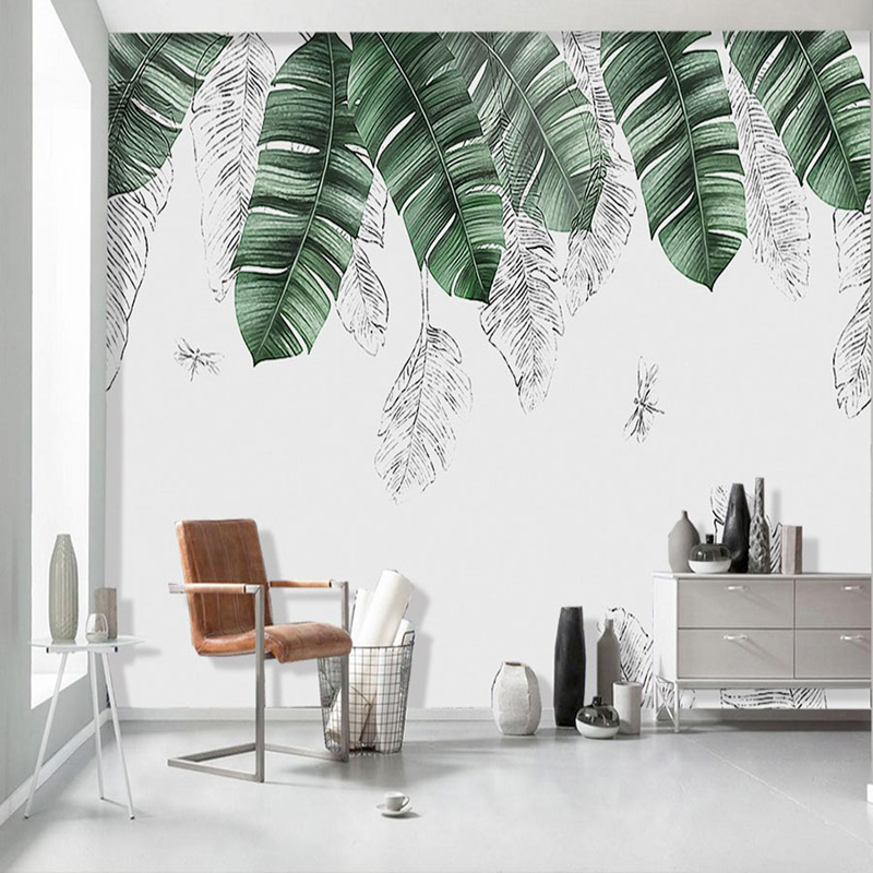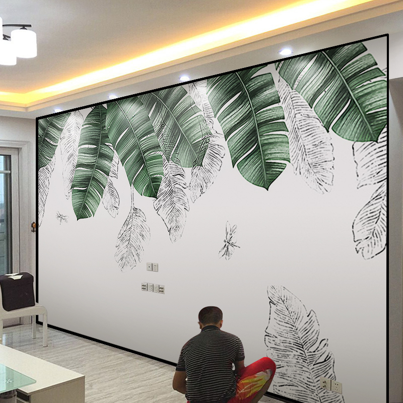 The green wallpaper rainforest hand-painted murals of banana leaves