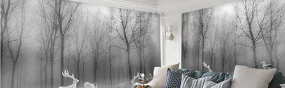 The Nordic milu deer fawn to black and white and gray forest wallpaper woods wall cloth