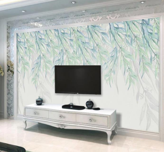 The Nordic contracted and pure and fresh water green leaves the sitting room the bedroom TV setting wall