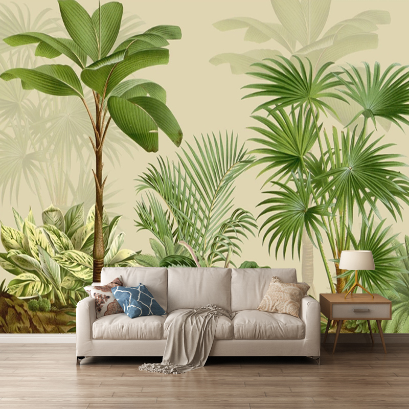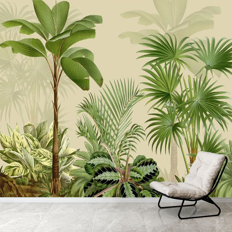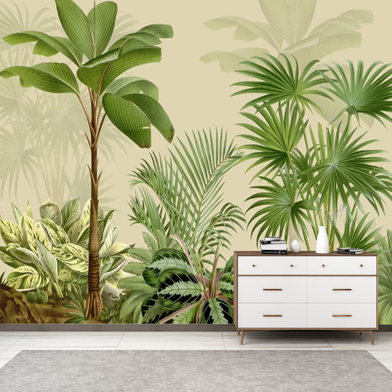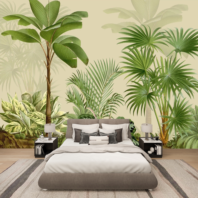 The Nordic contracted tropical plants hand-painted wall cloth bedroom wallpaper background wall
