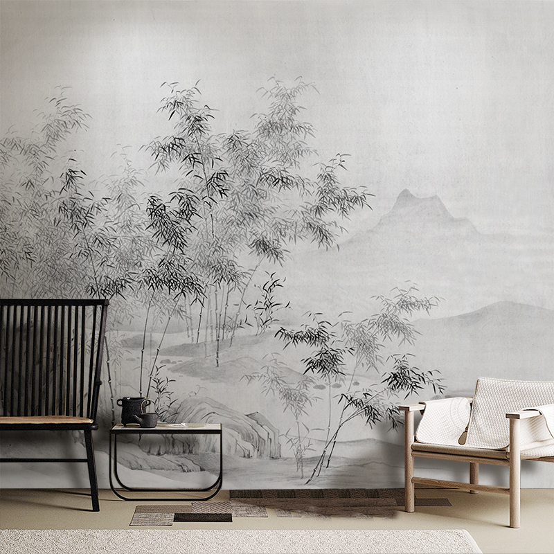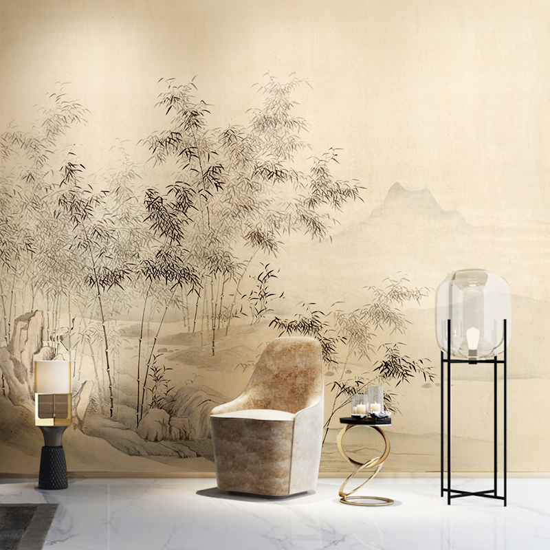 Chinese style classical elegant artistic conception ink bamboo sitting room background wall paper