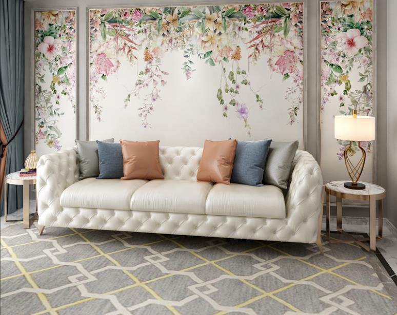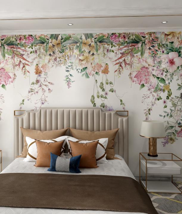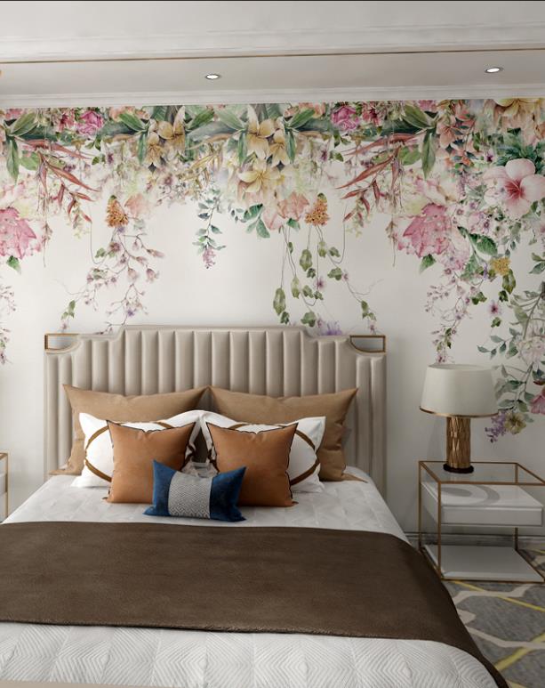 Modern hand-painted plant flowers rural wallpaper murals