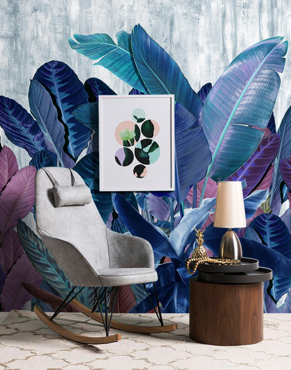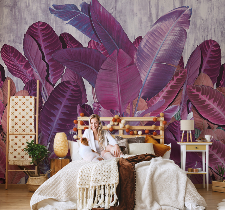 Tropical Plant and Banana Leaf Marble Wallpaper Wall Murals