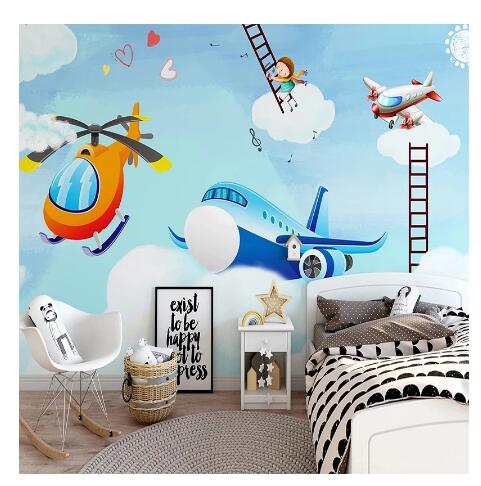 Blue Sky White Clouds Cartoon Airplane Children Room Boys Bedroom Wall Decoration Mural Modern Wallpaper Wall Murals