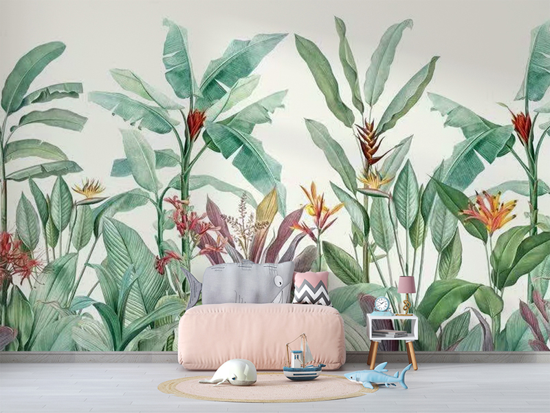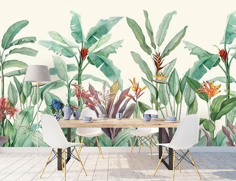 Green Botanical Tropical Minimalist Banana Leaf Wallpaper Mural for BackgroundWallpaper Wall Murals