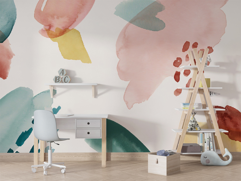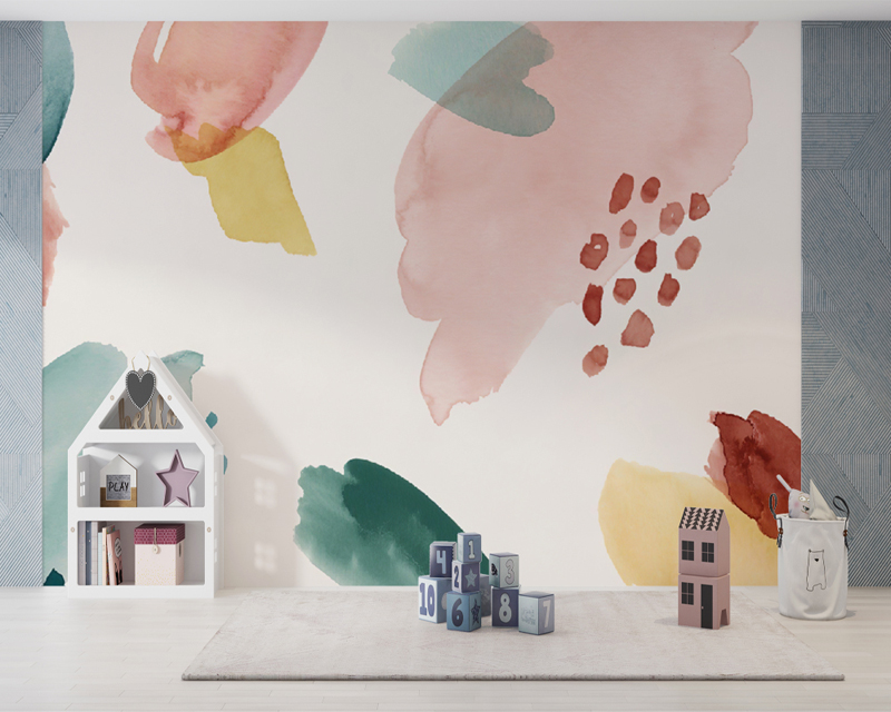 Multi-Colored Abstract Watercolor Brush Strokes Mural Wallpaper for Kids Nurseries BathroomWallpaper Wall Murals