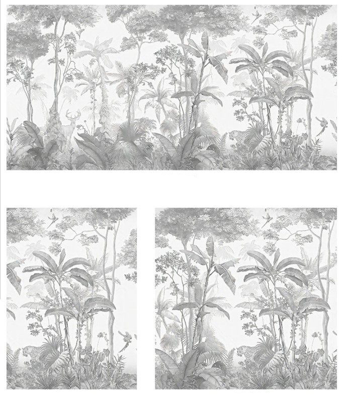 Black&White Tropical Forest Wallpaper Murals for Restaurant OFFICE COFFEE