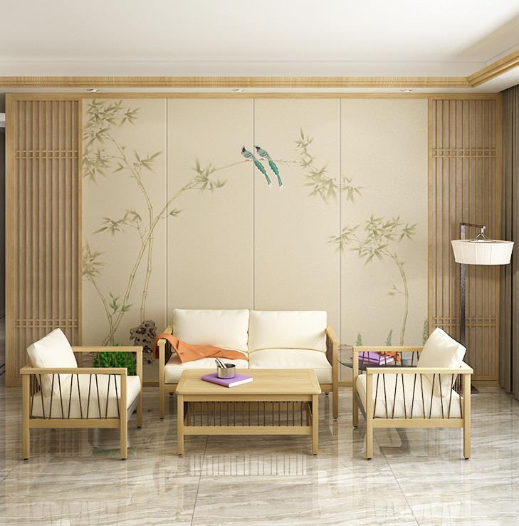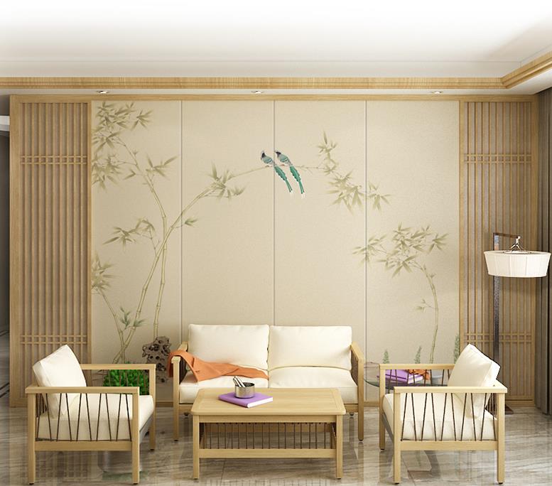 New Chinese style hand-painted painting of flowers and birds sitting room bamboo wallpaper murals