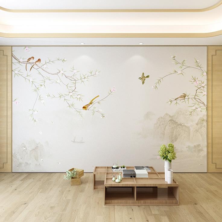 New Chinese style hand-painted painting of flowers and birds sitting room wallpaper murals