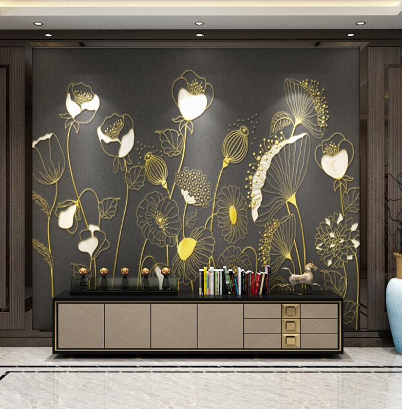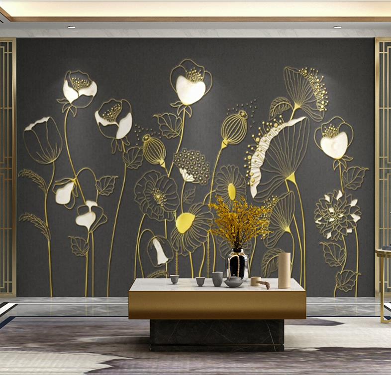 Bedroom wallpaper sofa contracted sitting room TV setting wall paper flower paintings
