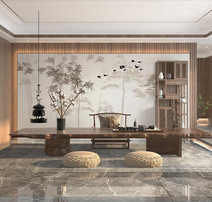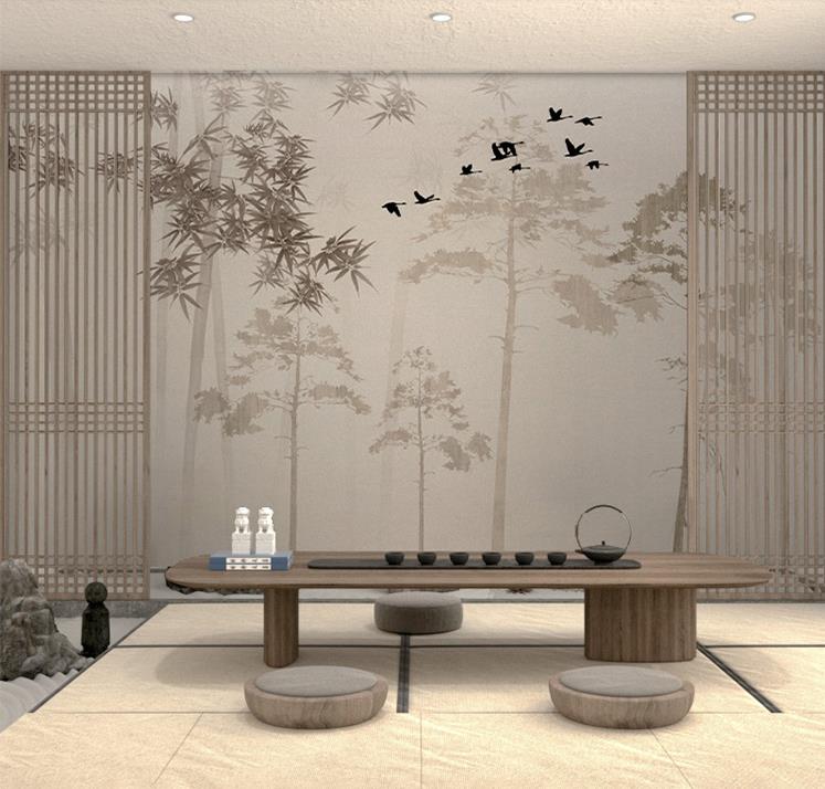 New Chinese style bamboo goose study wallpaper sitting room teahouse bedroom wall mural cloth custom wallpaper