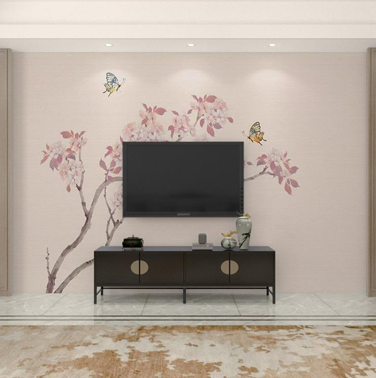 Peach blossom butterflies sitting room teahouse study of new Chinese style bedroom wall mural cloth custom wallpaper
