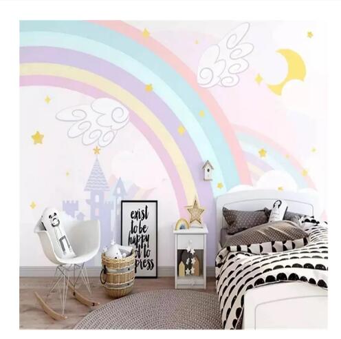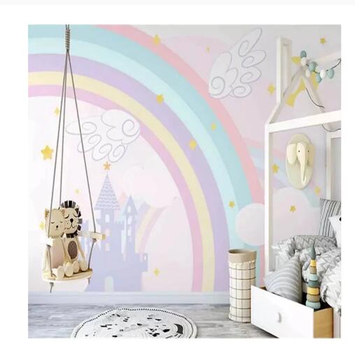 Cartoon Rainbow Castle Cartoon Murals for Baby Kid's/Children's Room Mural Background Photo Mural Wall Paper