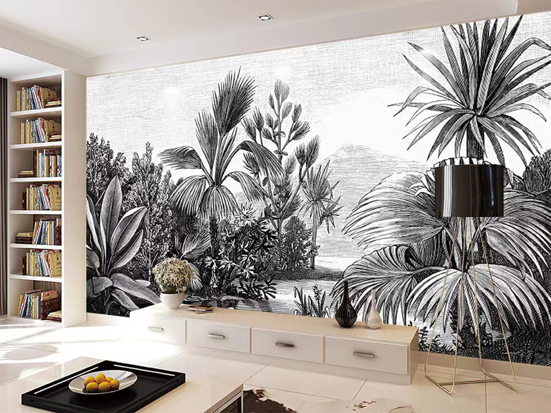 Black and White Vintage Tropical Etching Wallpaper Mural for Room Background