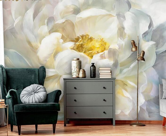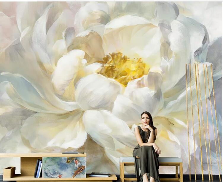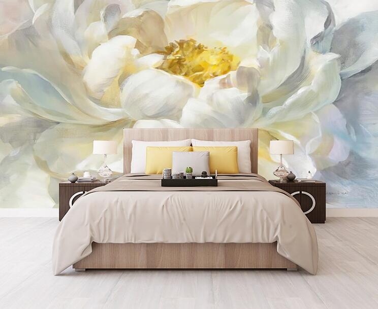 White Big Yellow Peony Floral Flower Wallpaper Wall Murals