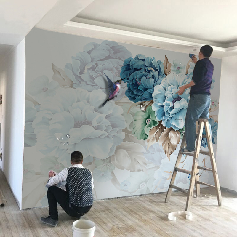 5.Level off surface of mural with a scraper, cut out the excess part with a knife and clean overflow glue with a sponge. Donot touch surface of mural with glue glue and avoid