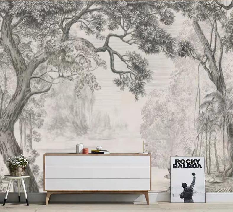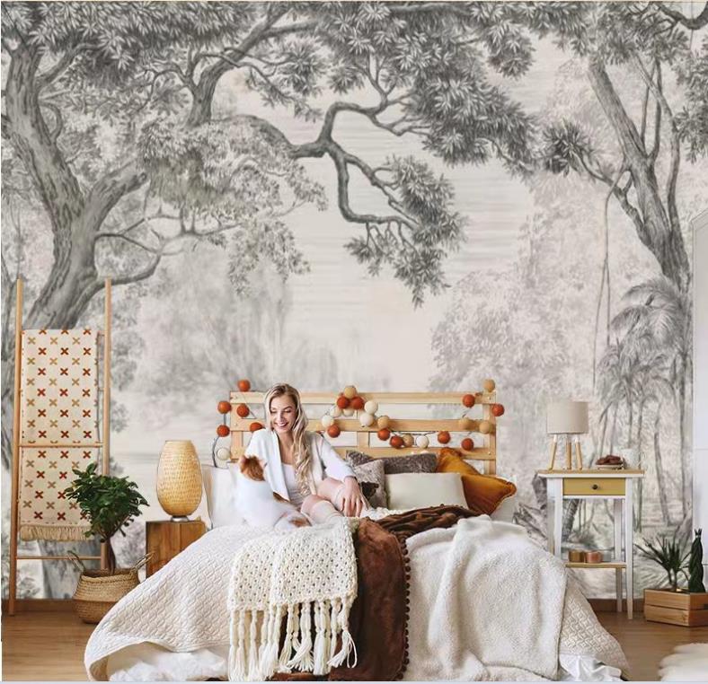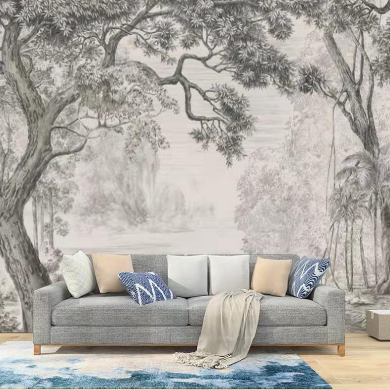4.Brush glue on wall or back of wallpaper and align the first mural to the chalk line and paste it.(Note: please leave 1-2cm for the top and bottom of the panel)