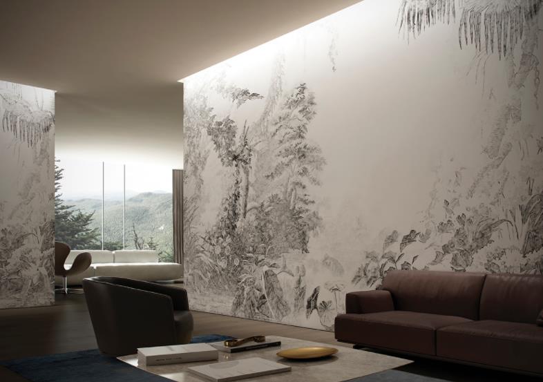 After you install the part 1 mural, then align the part 2 mural with the part 1 mural installed on the wall and paste the part 2 mural, then cut off the overlap of the two panels with knife and mural. Peel off the cut part and level off surface with a scraper.
