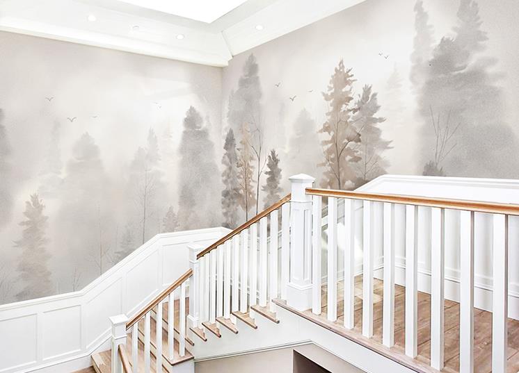 After you install the part 1 mural, then align the part 2 mural with the part 1 mural installed on the wall and paste the part 2 mural, then cut off the overlap of the two panels with knife and mural. Peel off the cut part and level off surface with a scraper.