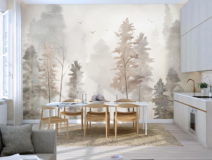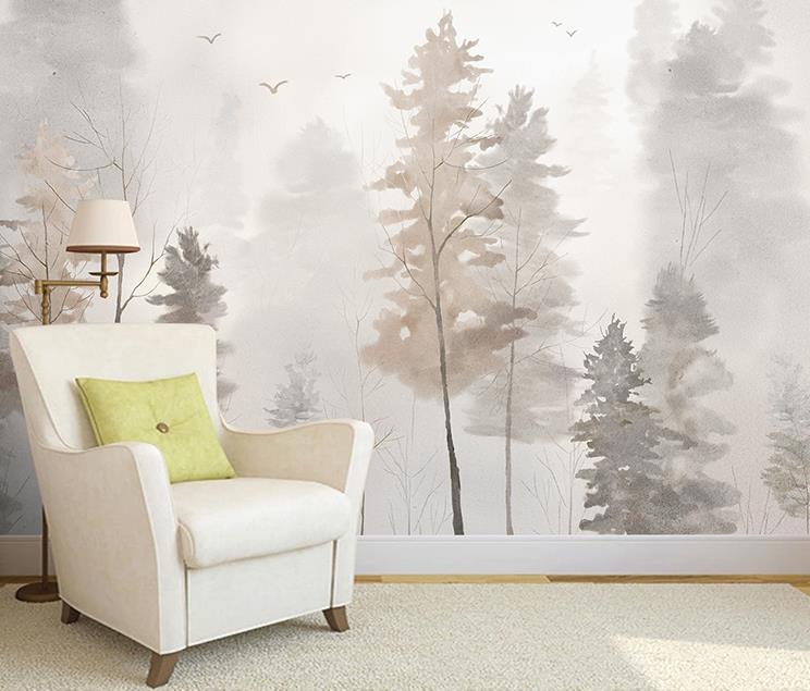 Hand-painted forest birds wallpaper murals