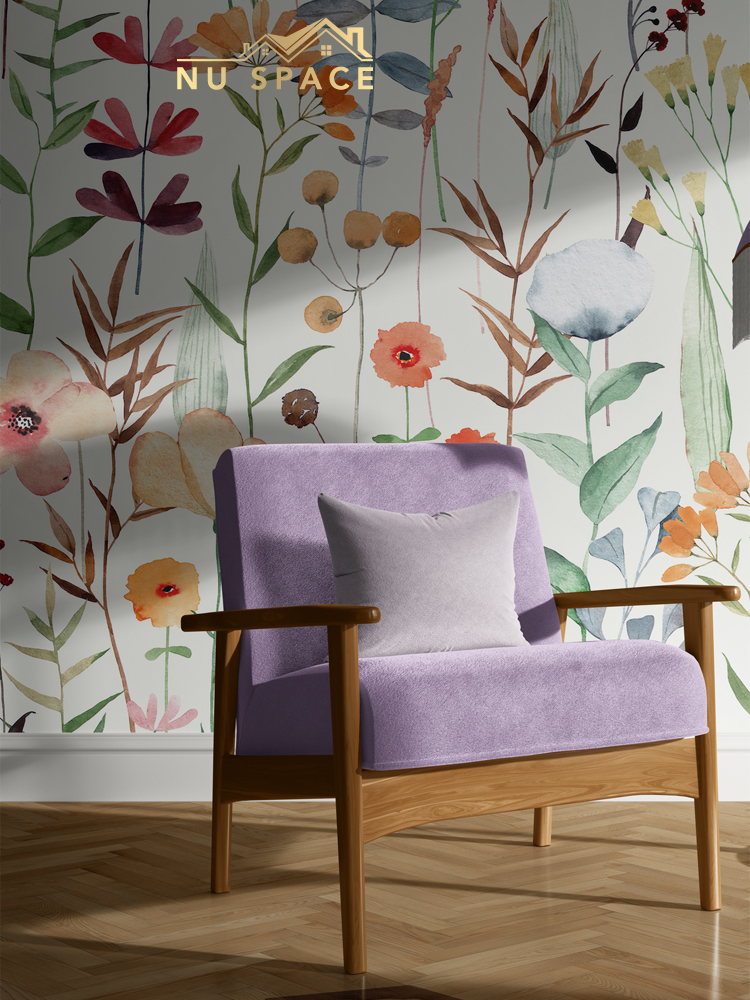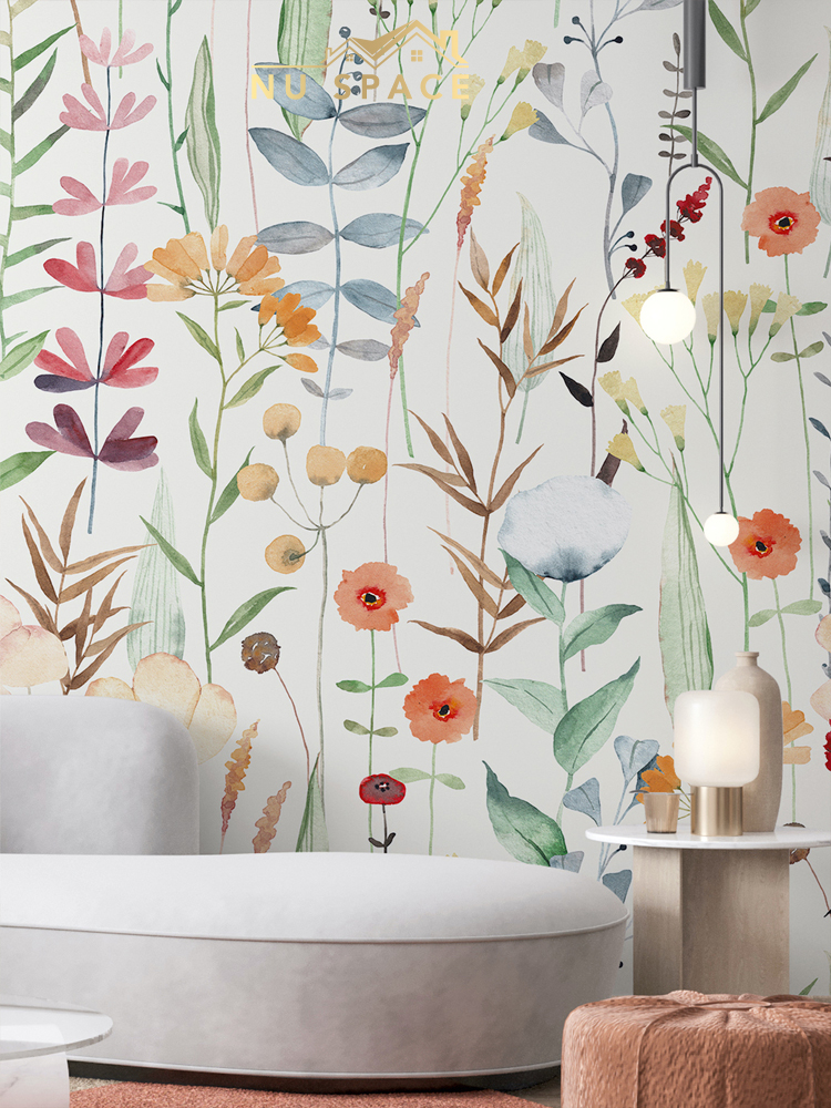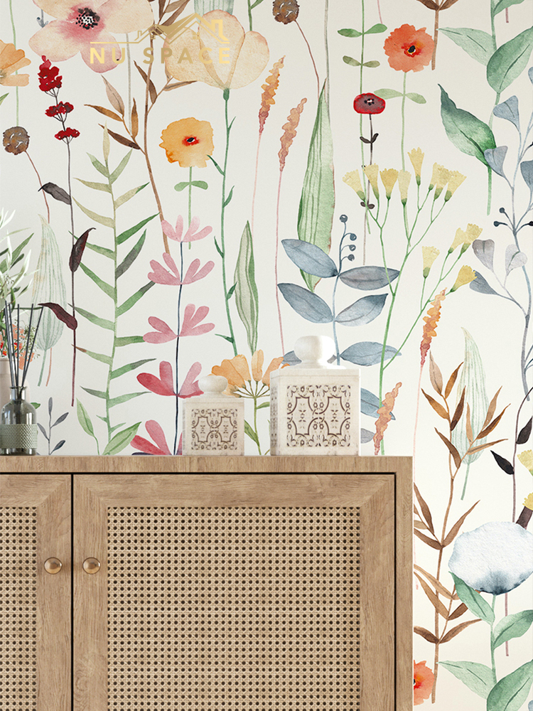 Watercolor Small Flowers and Leaves Nurdery Baby Girls Room Wallpaper Wall Murals