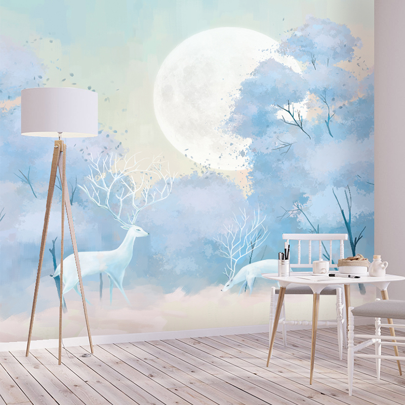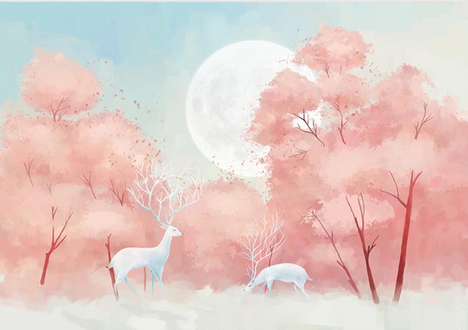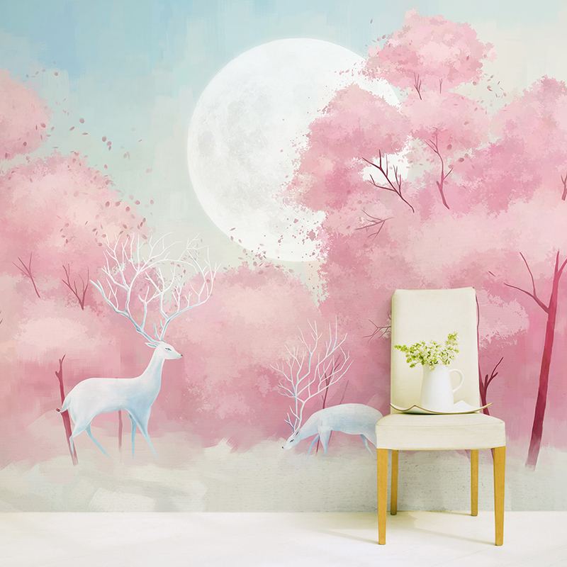 Elk wallpaper murals color plant trees