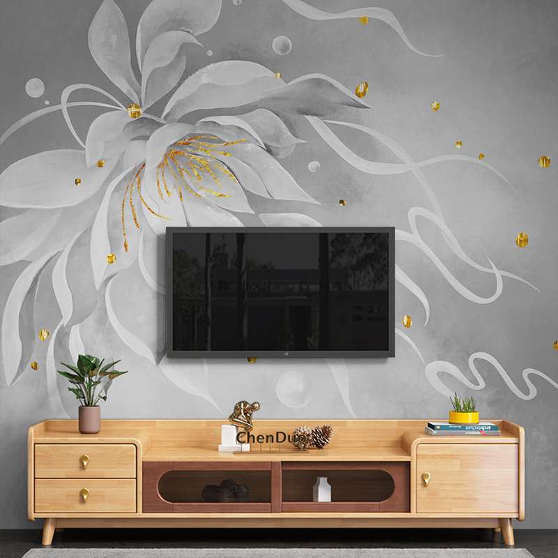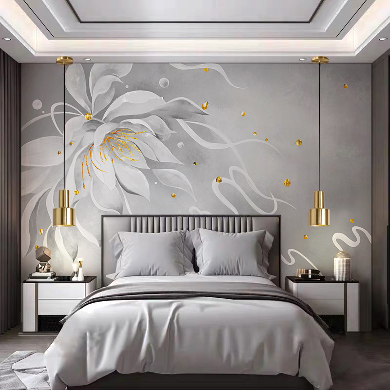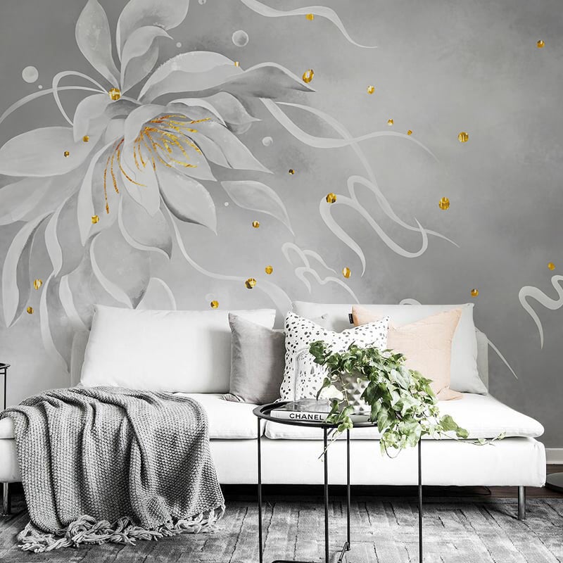Gray golden art flower wallpaper murals