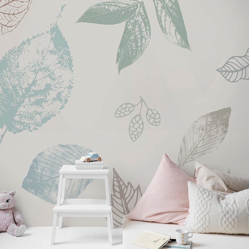 The hand-painted wallpaper murals leaves