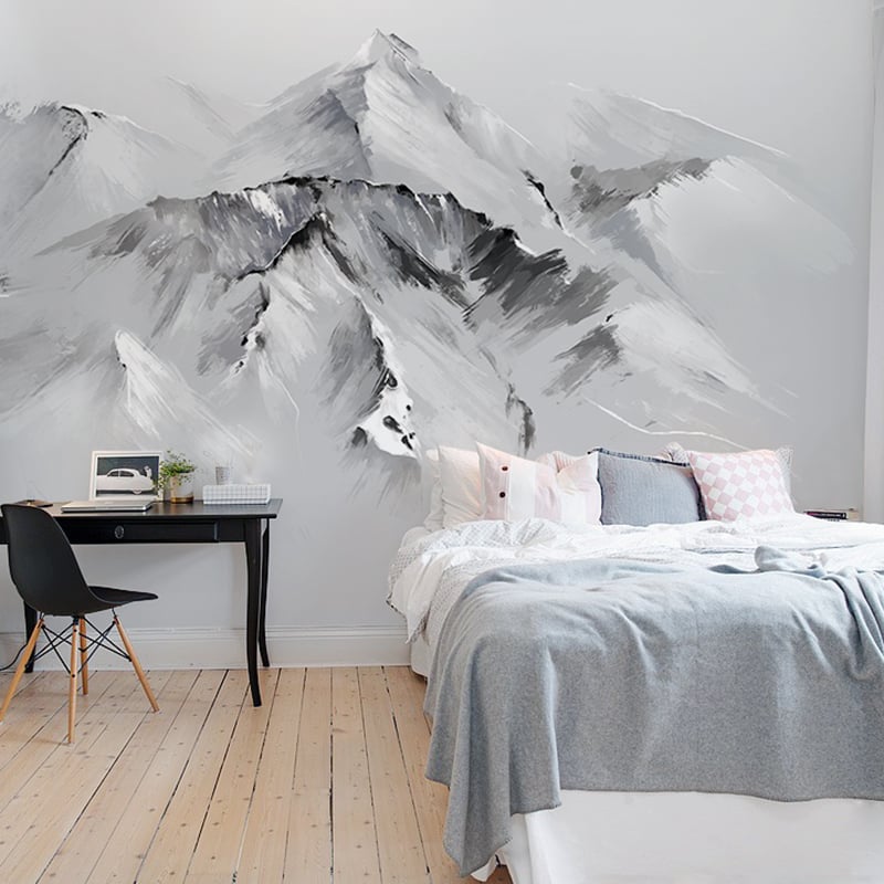 4.Brush glue on wall or back of wallpaper and align the first mural to the chalk line and paste it.(Note: please leave 1-2cm for the top and bottom of the panel)