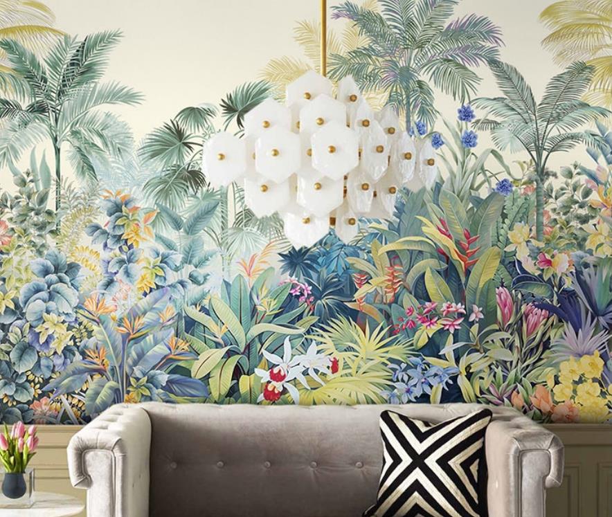 4.Brush glue on wall or back of wallpaper and align the first mural to the chalk line and paste it.(Note: please leave 1-2cm for the top and bottom of the panel)