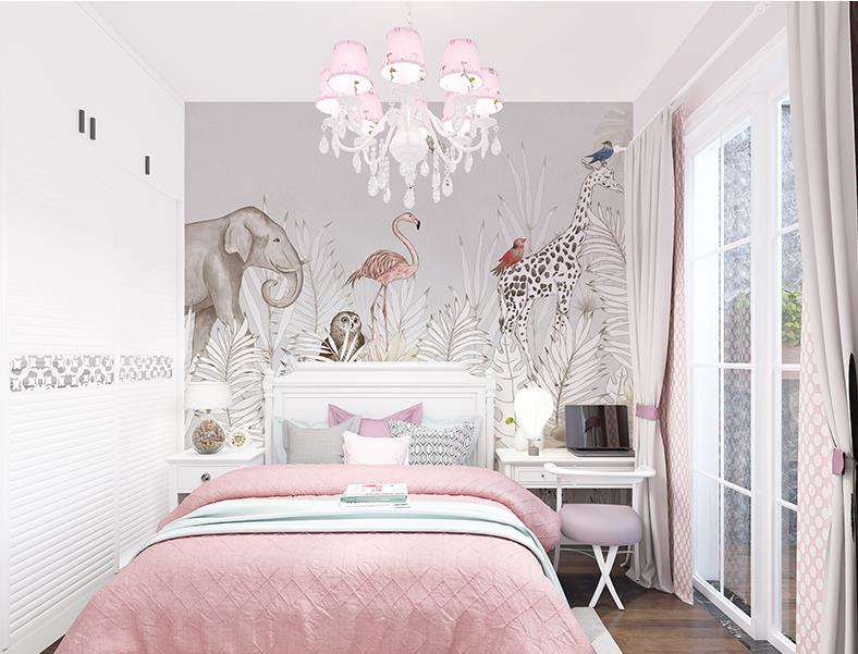 African grassland animals elephants giraffe flamingos wallpaper murals