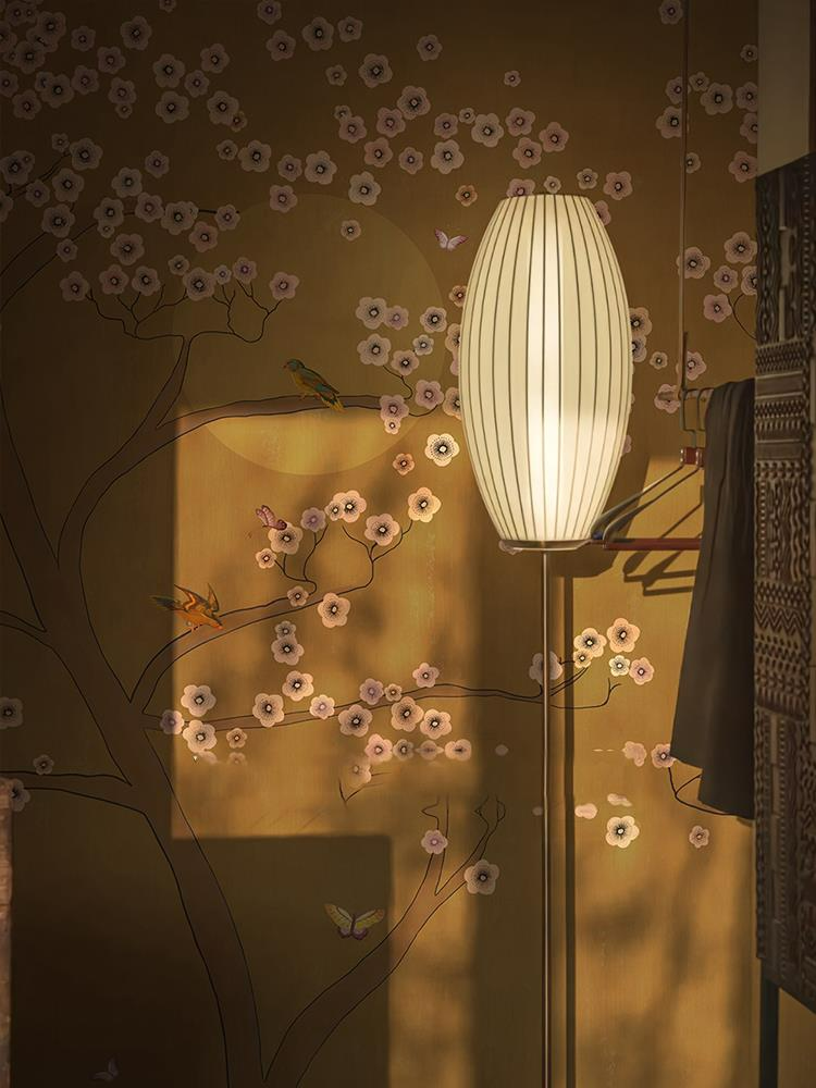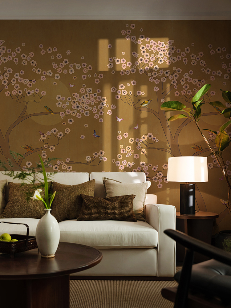 4.Brush glue on wall or back of wallpaper and align the first mural to the chalk line and paste it.(Note: please leave 1-2cm for the top and bottom of the panel)
