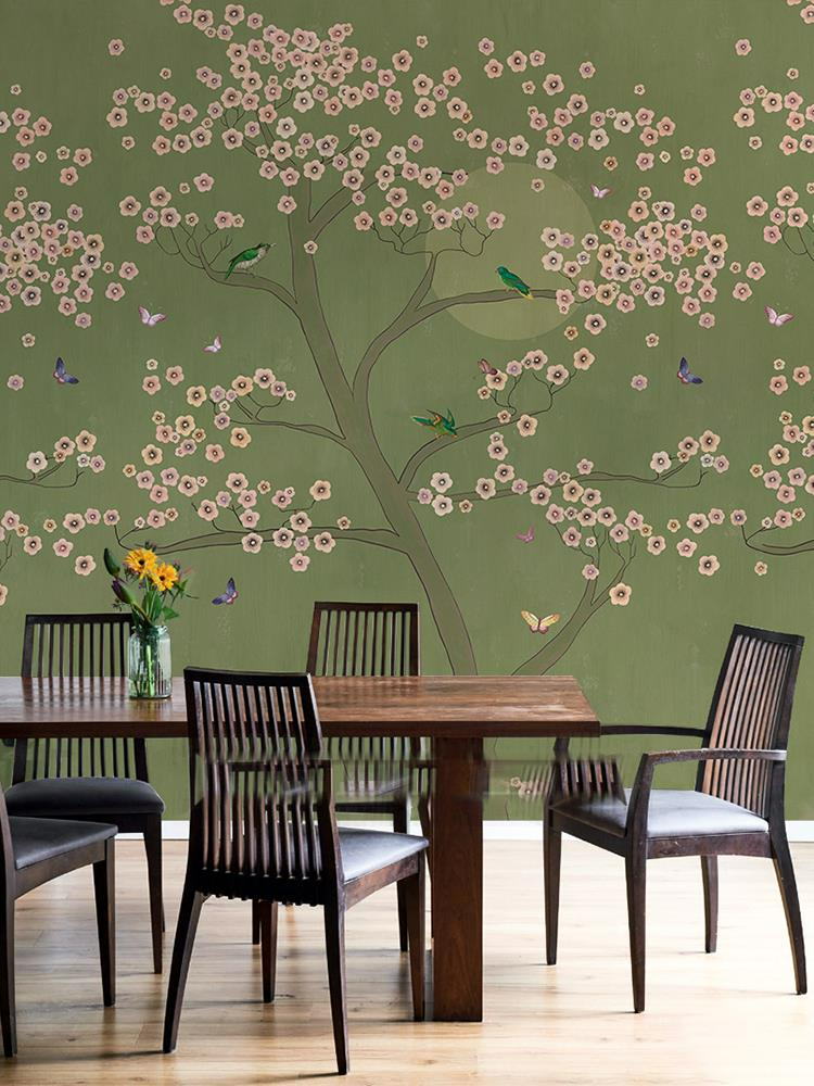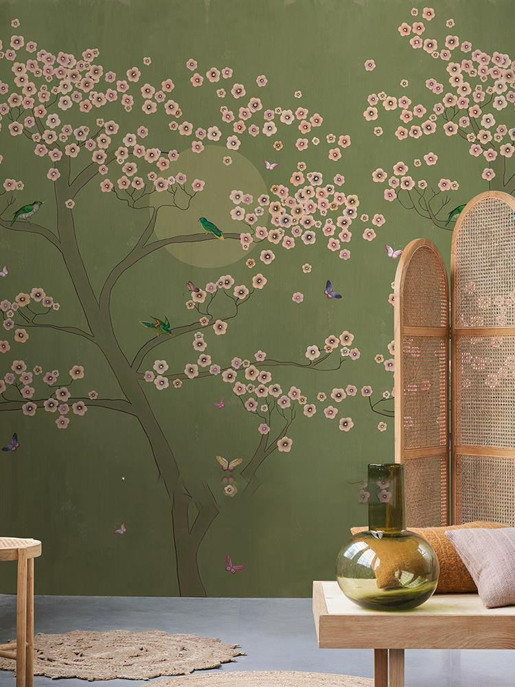 After you install the part 1 mural, then align the part 2 mural with the part 1 mural installed on the wall and paste the part 2 mural, then cut off the overlap of the two panels with knife and mural. Peel off the cut part and level off surface with a scraper.