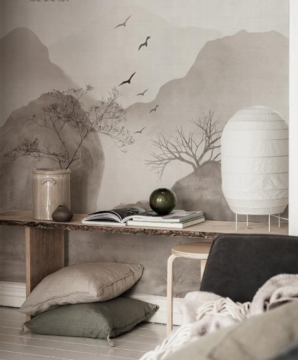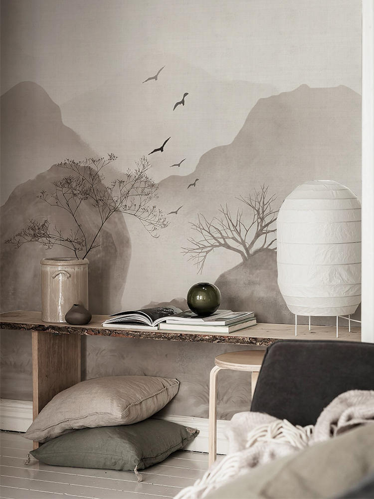 After you install the part 1 mural, then align the part 2 mural with the part 1 mural installed on the wall and paste the part 2 mural, then cut off the overlap of the two panels with knife and mural. Peel off the cut part and level off surface with a scraper.