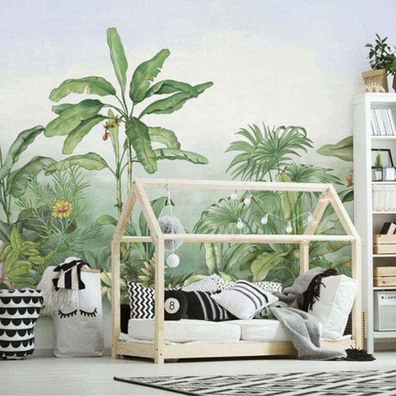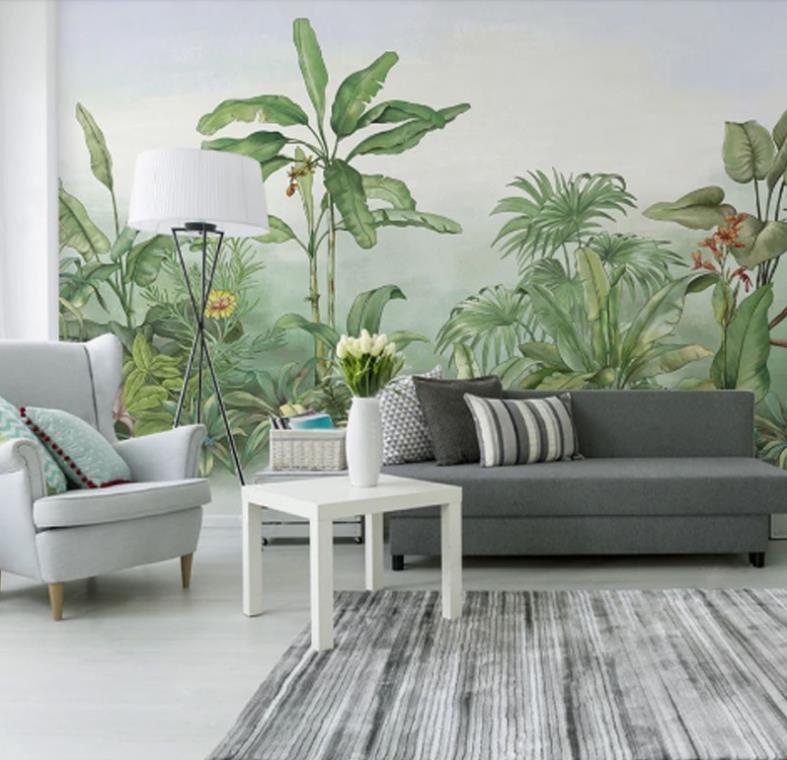 4.Brush glue on wall or back of wallpaper and align the first mural to the chalk line and paste it.(Note: please leave 1-2cm for the top and bottom of the panel)