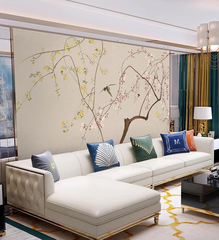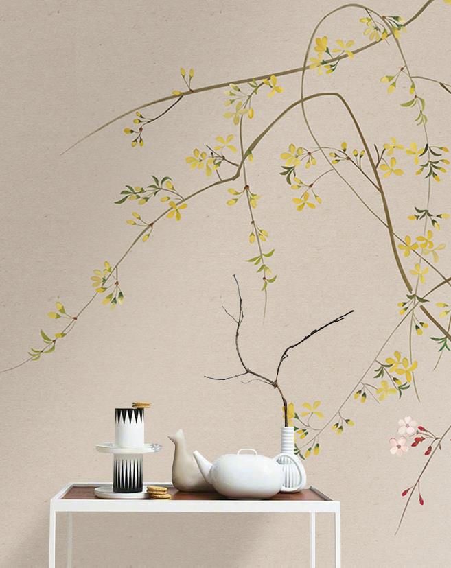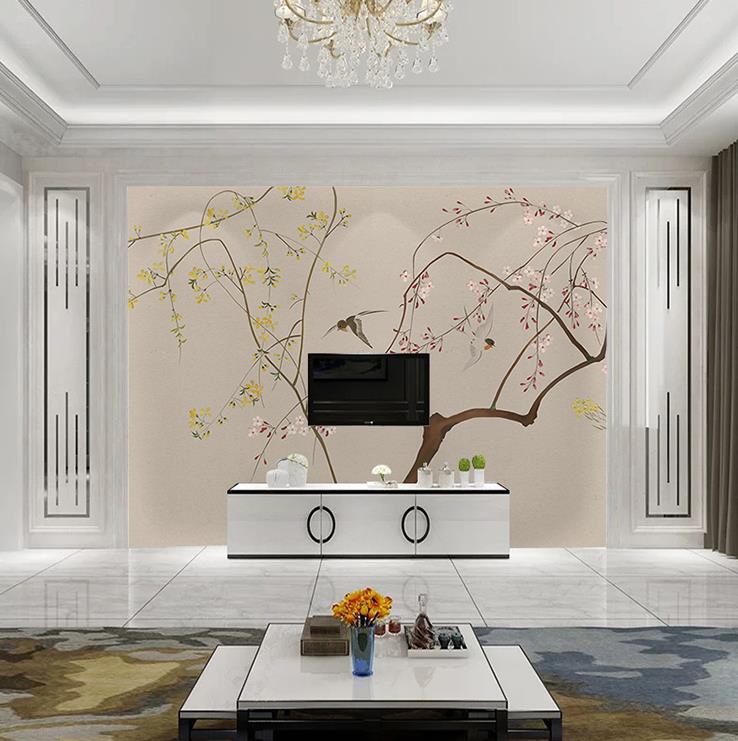 Chinese fine brushwork painting of flowers and floral wallpaper murals
