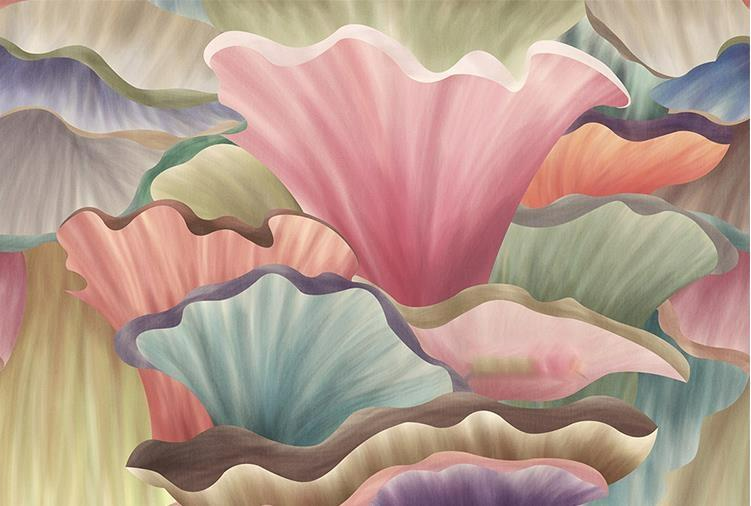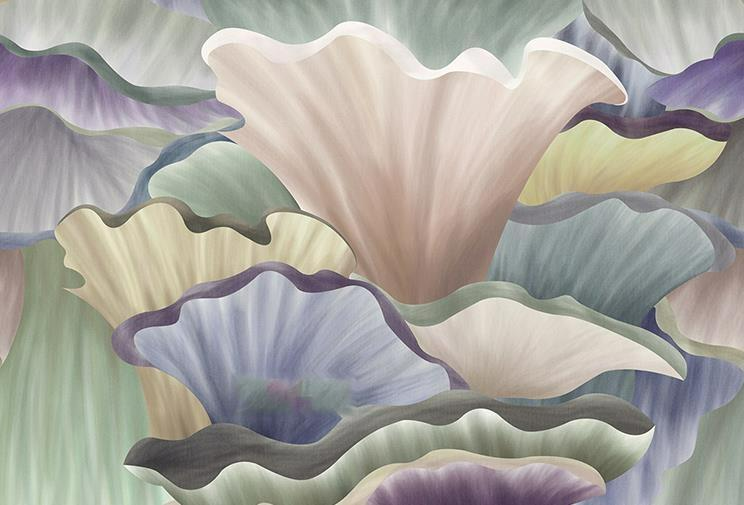 After you install the part 1 mural, then align the part 2 mural with the part 1 mural installed on the wall and paste the part 2 mural, then cut off the overlap of the two panels with knife and mural. Peel off the cut part and level off surface with a scraper.
