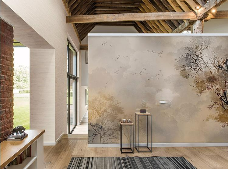 After you install the part 1 mural, then align the part 2 mural with the part 1 mural installed on the wall and paste the part 2 mural, then cut off the overlap of the two panels with knife and mural. Peel off the cut part and level off surface with a scraper.