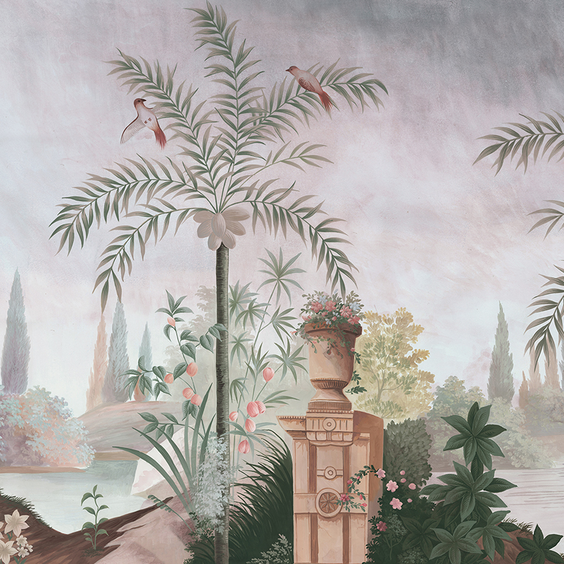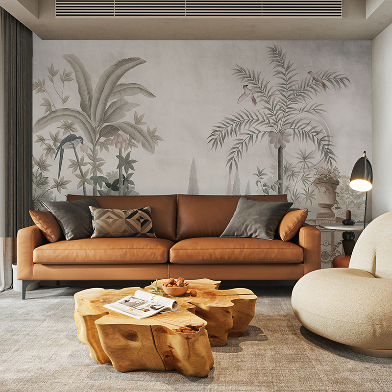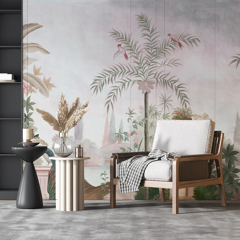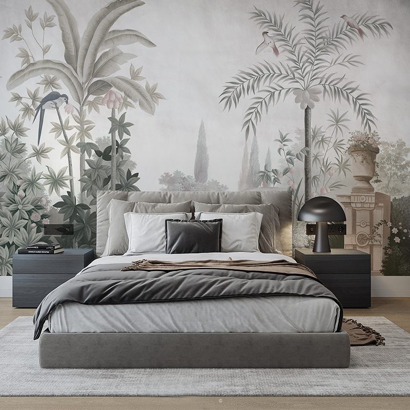 After you install the part 1 mural, then align the part 2 mural with the part 1 mural installed on the wall and paste the part 2 mural, then cut off the overlap of the two panels with knife and mural. Peel off the cut part and level off surface with a scraper.