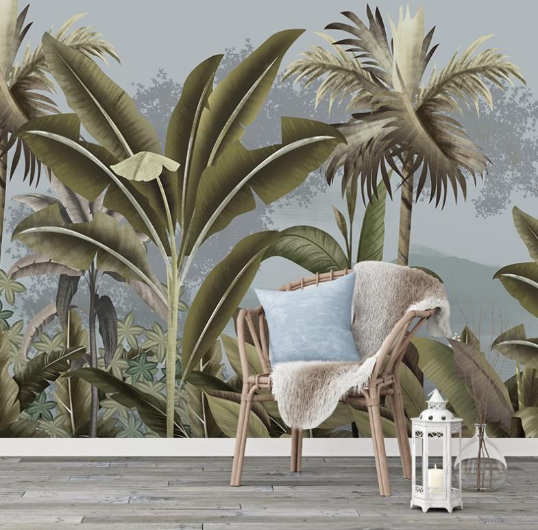 4.Brush glue on wall or back of wallpaper and align the first mural to the chalk line and paste it.(Note: please leave 1-2cm for the top and bottom of the panel)