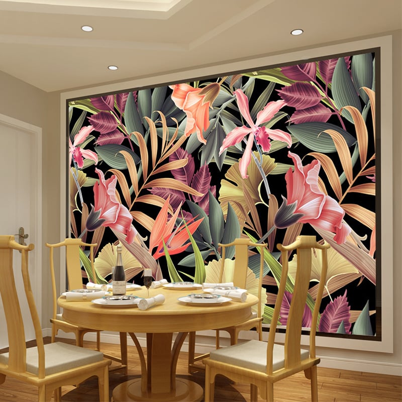 4.Brush glue on wall or back of wallpaper and align the first mural to the chalk line and paste it.(Note: please leave 1-2cm for the top and bottom of the panel)